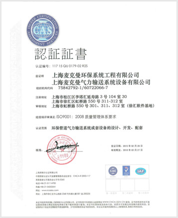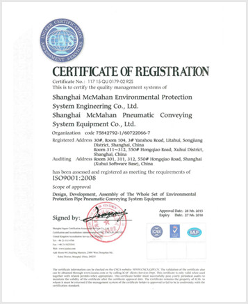 上海麥克曼氣力輸送設(shè)備有限公司系統(tǒng)成套設(shè)備認證證書 ······························································································································································································································